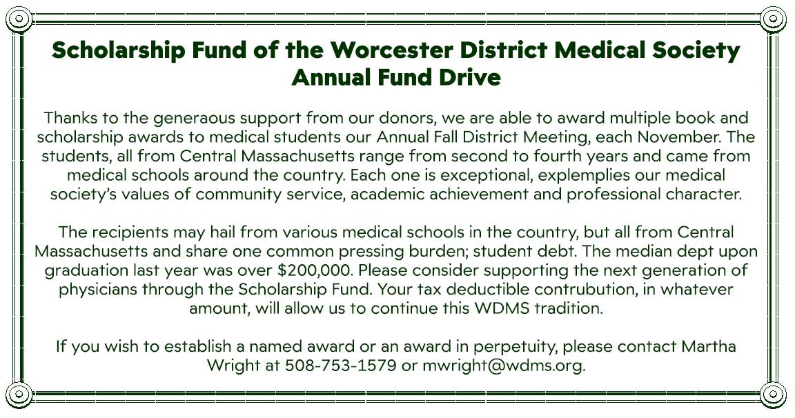 Worcester Medicine, The official quarterly publication of WDMS, addressing important healthcare issues facing central Massachusetts