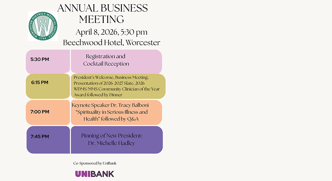 The Worcester District Medical Society is pleased to represent and serve our members. We are the organized voice for physicians and medical student members in Central Massachusetts and are committed to unite and educate the community. We are one of twenty districts in the state and the Massachusetts Medical Society (MMS) is our parent organization. In addition to our regular membership, we offer different levels of membership for students, residents/fellows, seniors and groups. And members’ spouses can belong to the Worcester District Medical Society Alliance. The WDMSA also organizes educational and social events.