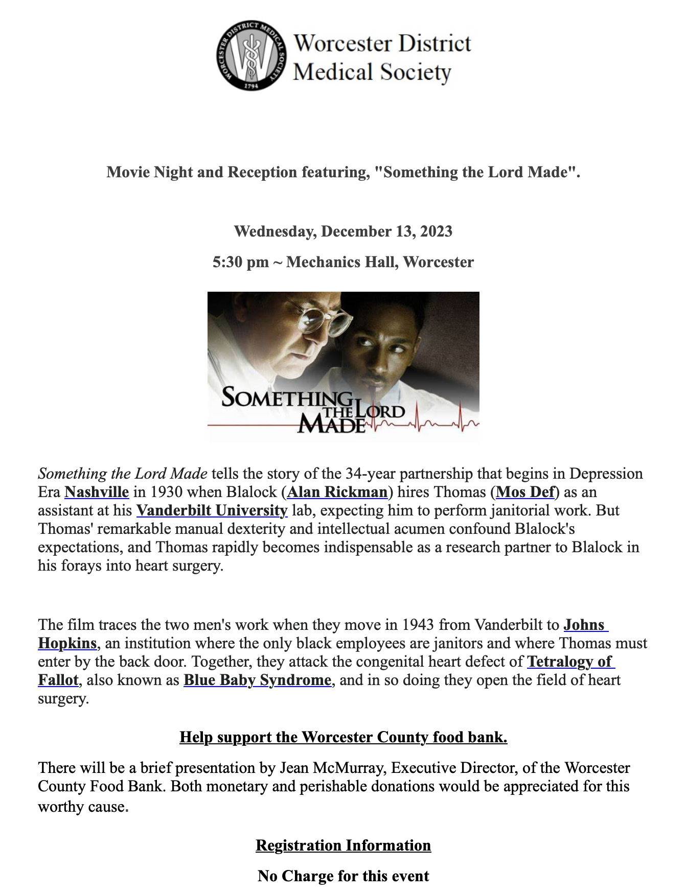 Movie Night and Reception featuring “Something the Lord Made”